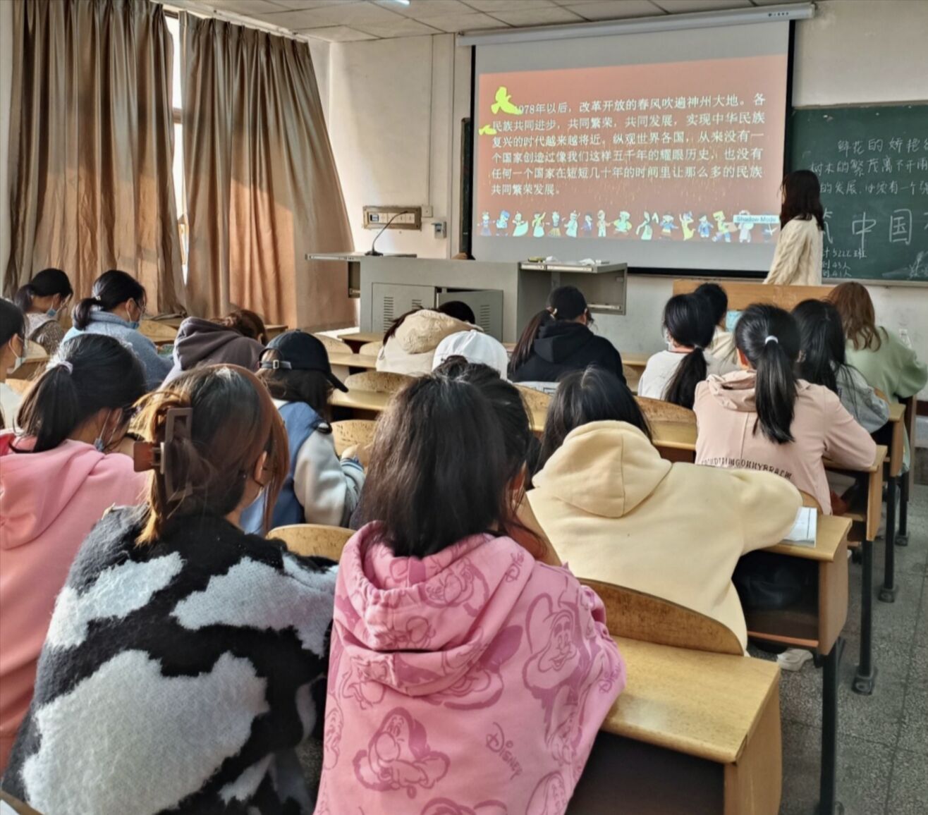 本网讯(通讯员 邵娟)11月17日为了能够培养老员工团结友爱 民族团结 守望相助 共同实现民族复兴的伟大梦想的意识,我系大一 大二 大三的同学们有序开展了以“民族团结一家亲,同心共筑中国梦”为主题的团课。