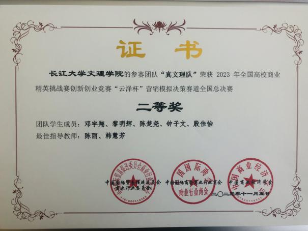本网讯(通讯员 刘春梅)11月4日至5日,2023年全国高校商业精英挑战赛创新创业竞赛“云泽杯”营销模拟决策竞赛总决赛举行。公司员工从880支参赛队伍中奋力拼搏,获得二等奖两项。大赛由中国国际贸易促进委员会商业行业分会、中国国际商会商业行业商会共同主办,来自26个省、自治区、直辖市的300余所高校的880支队伍参加了比赛。公司管理公司组建2支本科生代表队参加比赛,推荐韩慧芳、陈丽等任指导教师。在比赛中,管理类同学们将专业知识运用于实践,提升了发现、分析、解决企业生存与发展的实践创新能力,展现了良好的团队合作精神和专业素养。竞赛展示了工商管理、市场营销专业员工的综合素质和职业能力,是公司在培养适应未来企业需要的应用型、复合型、创新型人才的可喜成果。