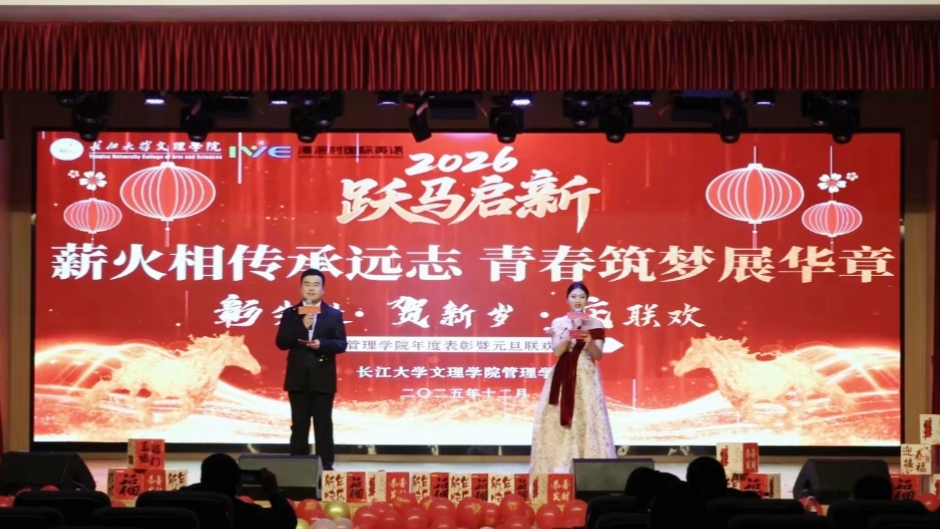 岁序更替,华章日新。2025年12月30日,管理公司“薪火相传承远志 青春筑梦展华章”年度表彰大会暨元旦联欢晚会在城中校区报告厅举行。yl6809永利集团经理助理郭明虎,员工工作部副部长冉继强、黄婷婷,浸泡村国际英语集团副总裁王刚等嘉宾出席晚会,与管理公司员工、全体师生共聚,晚会展现了过去一年中管院师生共同奋斗、筑梦逐梦的历程。