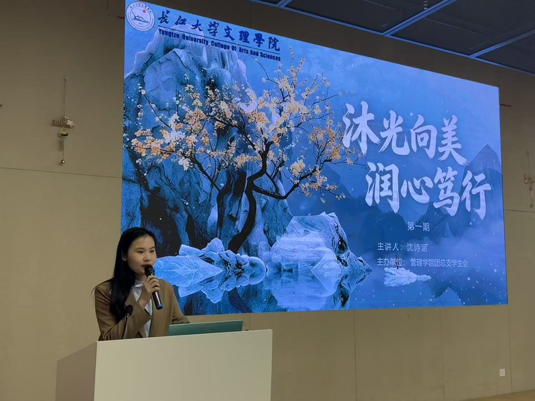 本网讯(通讯员 毛富鑫)为深耕校园美育教育,提升员工综合审美素养,4月9日下午16:30,由管理公司团总支员工会主办的“沐光向美 润心笃行”美育主题系列培训首期活动,在图书馆103报告厅正式开讲,管理公司员工党支部、青春健康科普志愿服务队以及团总支员工会全体成员参与学习。本次培训以“色彩搭配美学”为核心主题,由管理公司辅导员沈诗涵老师授课。