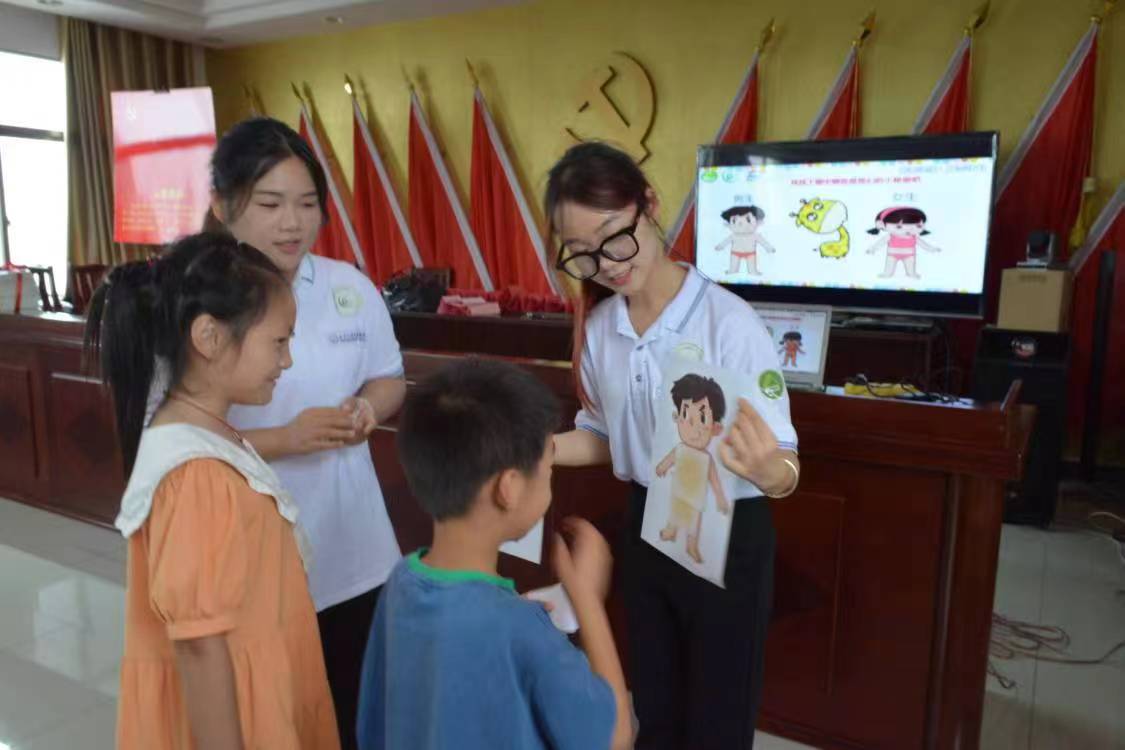 随后,志愿团队成员根据自身专业特长,精心设计了涵盖互动小游戏,科普小视频,精彩绘本等以“预防性侵”为主要内容的多元化课程——本次活动旨在提高性知识在农村地区的普及率,增强小朋友的性意识。青年志愿者们以互动式课堂与小朋友们深入交流,让“性”话题以新颖的方式呈现出来。课堂上,孩子们对相关问题积极思考,参与活动跃跃欲试,与老员工志愿者们的互动中充满了欢声笑语。