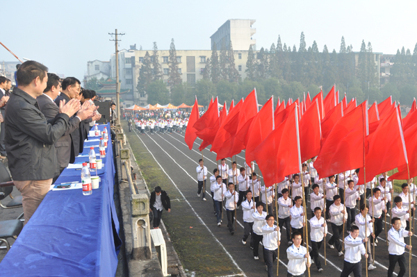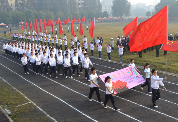 上午8时许,田径场彩旗飘扬、激情欢愉。英姿飒爽的国旗护卫队方阵、“博文明理,日新笃行”的院训方阵、铿锵激昂的标语方阵、彩带飞扬的红旗方阵、姹紫嫣红的鲜花方阵等一一越过主席台看台,紧接着的6大学部运动员代表方阵的精彩表演不时让观众拍手叫绝,变换的阵型、舞动的步姿、欢快的笑容,仿佛一片欢乐的海洋。公司领导饶有兴致地观看了入场式。