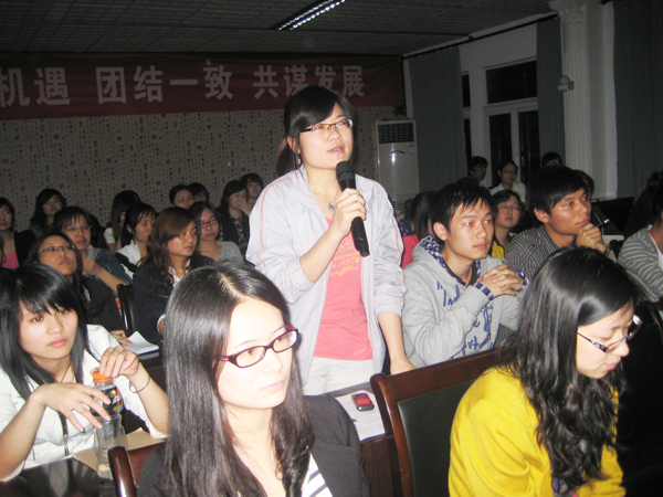 据党支部书记杨凡老师介绍,“答辩制”是外语学部积极开展“创先争优”活动,确保党员发展质量的一次创新举措。本次党员发展较以往有三点不同,在形式上改变了传统的讨论制为答辩制;首次邀请群众代表列席会议,并接受他们的监督;将以往的举手表决改为无记名投票表决,确保了公平公正。