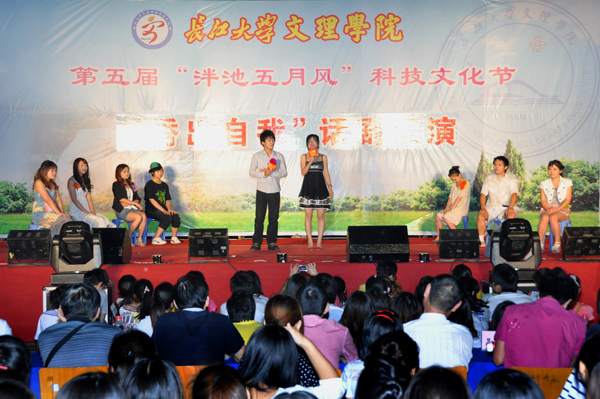 校园版武林外传《茶馆无间道》为同学们带来了阵阵欢笑;讲述贫苦老员工自立自强,努力奋斗的作品《我相信》,引起了现场观众的共鸣;倡导环保节约意识的《谁是可怜人》让大家在笑声过后,深刻反思;“10•24”英雄班级表演的话剧《地震的瞳孔》折射出自然灾害面前,中国人的民族大爱。