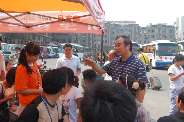 各个迎新站点的工作进行的如何?为新生以及家长准备的遮阳篷是否发放到位?这方面问题牵系着公司领导的心,为了深入了解这些情况,上午10点整,公司经理沈光明、党委副书记汪邦柱,对荆州长途汽车客运站、沙市长途汽车客运站、红门路汽车客运站等五个迎新站点进行了一一走访。由于红门路以及沙市长途汽车客运站新生及家长较多,一辆迎新车无法满足需要,汪书记马上与学工处负责老师联系,要求这两个站点增派车辆。同时,由于人比较多,一个帐篷无法满足,沈经理当场要求相关负责人落实迎新站点帐篷,让新生以及家长在阴凉下等待迎新专车。