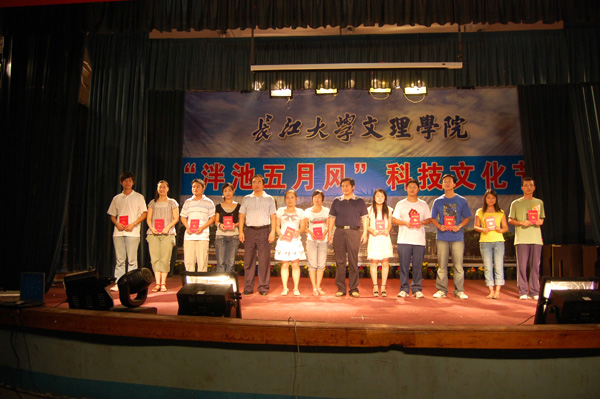 晚会上,经理沈光明、书记董武、副书记汪邦柱、学工处主任彭中分别给在此次科技文化节的各项比赛中获得优异成绩的单位和个人颁发了证书。