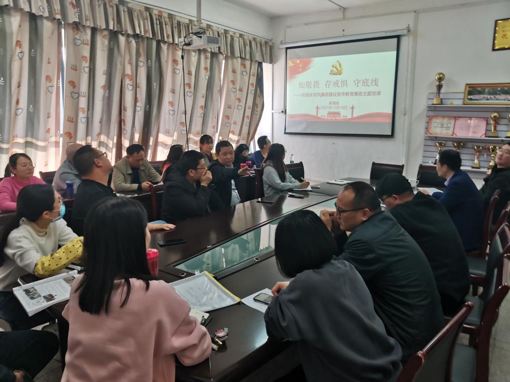 11月18日下午,机电系党总支书记吴海良以“知敬畏 存戒惧 守底线”为主题,在机电系进行党风廉政建设宣传教育,讲廉政主题党课。