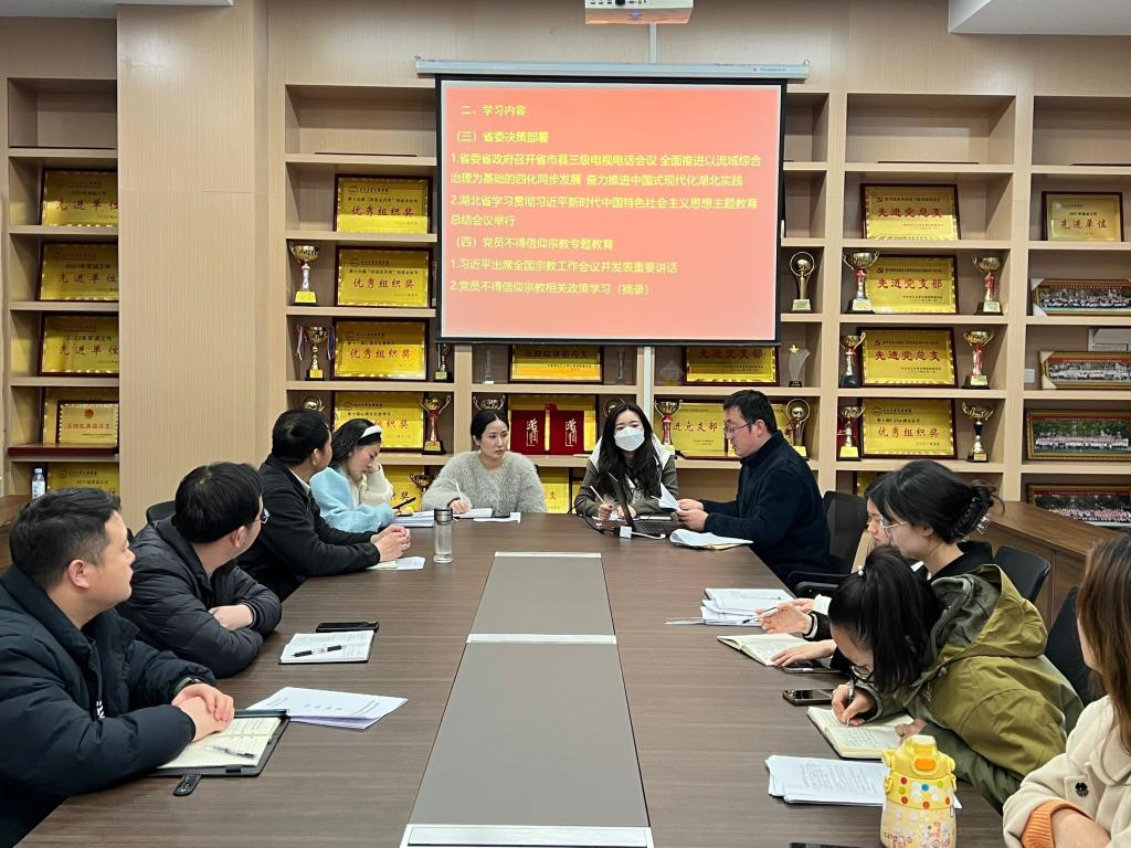 在支部主题党日活动中,全体党员重温入党誓词、交纳党费、集体诵读《中国共产党章程》第二章;集体学习习近平总书记重要讲话重要指示精神和中央重要会议精神:习近平在2024年春季学期中央党校(国家行政公司)中青年干部培训班开班之际作出的重要指示;《2024年国务院政府工作报告》;中共中央印发《党史学习教育工作条例》;中共中央办公厅关于巩固拓展学习贯彻习近平新时代中国特色社会主义思想主题教育成果的意见;省委省政府召开省市县三级电视电话会议精神——全面推进以流域综合治理为基础的四化同步发展,奋力推进中国式现代化湖北实践;湖北省学习贯彻习近平新时代中国特色社会主义思想主题教育总结会议;党员不得信仰宗教专题教育等内容。