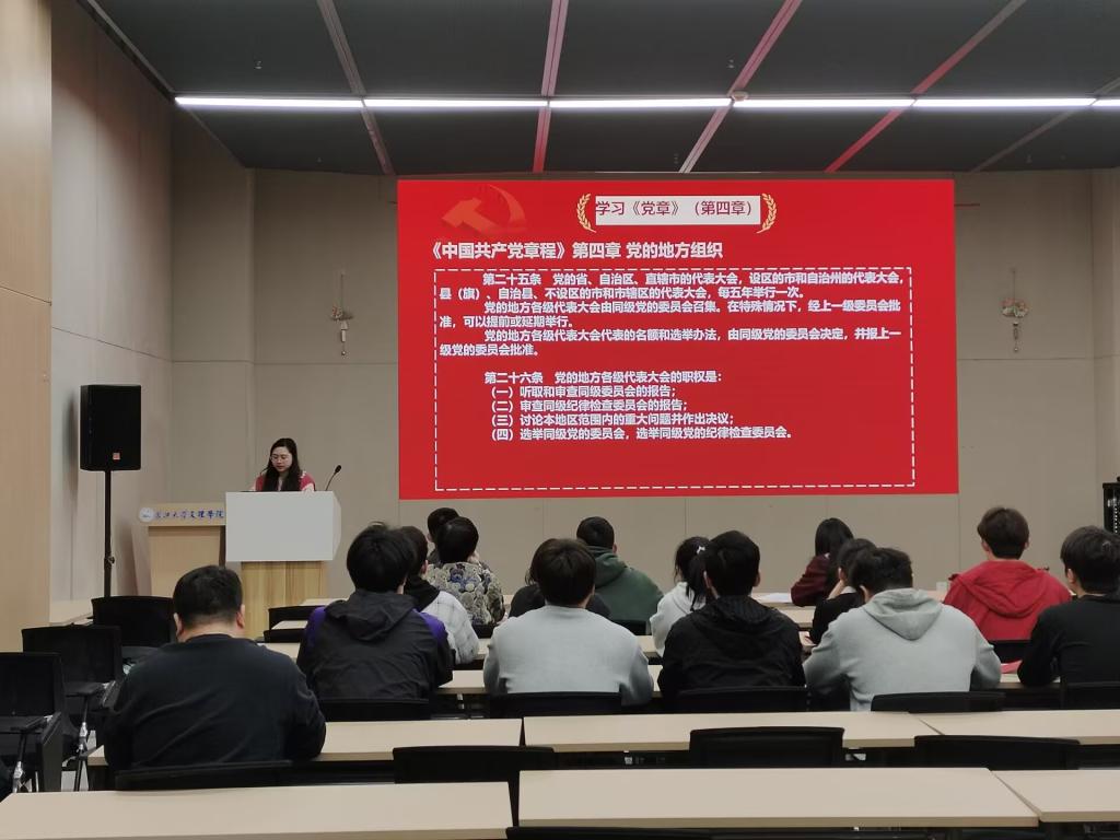 支部主题党日活动阶段,全体党员重温入党誓词,并按时交纳党费。其后,全体党员集中学习《中国共产党章程》(第四章);学习习近平在二十届中央纪委四次全会上发表的重要讲话:坚持用改革精神和严的标准管党治党、坚决打好反腐败斗争攻坚战持久战总体战;学习《求是》杂志发表的习近平总书记重要文章——《健全全面从严治党体系》;学习中央组织部负责人就《全国党员教育培训工作规划(2024—2028年)》答记者问的内容。