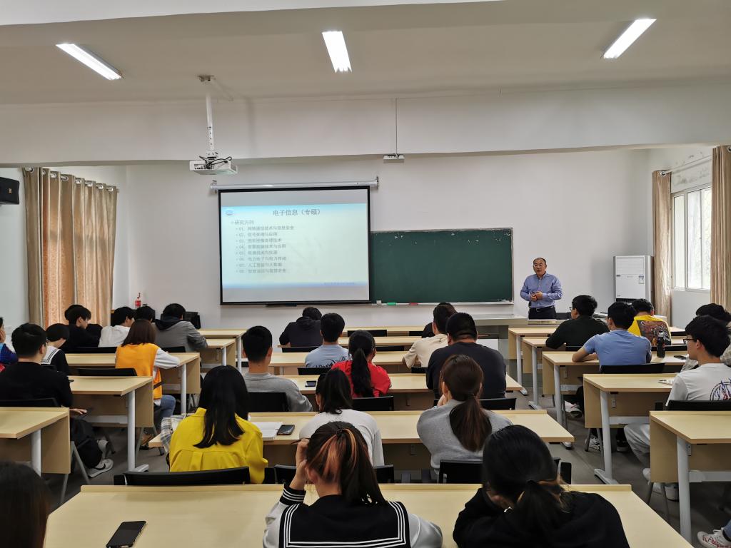 本网讯(员工记者 孙健博)5月20日下午,在西校区三教205教室,来自永利集团电子信息公司的招生团队,为我系学子进行研究生招生宣讲会。会议由电信公司副经理蔡昌新主持,我系电信专业李相敏老师出席,电信5181班、物联5181班全体学子参加。
