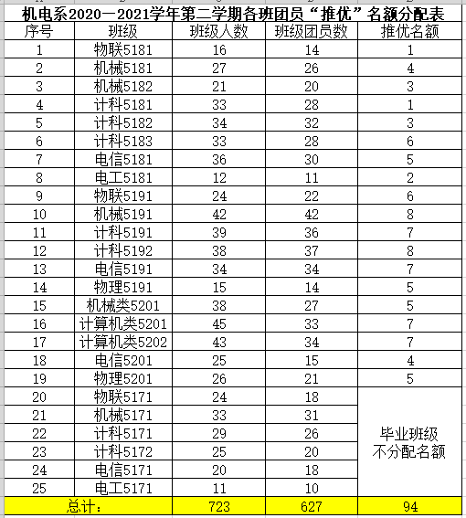 根据yl6809永利集团团委《关于做好2021年上半年团员“推优”工作的通知》要求,现将机电系各团支部团员“推优”名额分配公示如下: