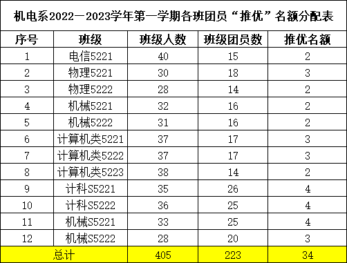 根据yl6809永利集团团委《关于做好2022年下半年团员“推优”工作的通知》要求,现将机电系2022级各团支部团员“推优”名额分配公示如下: