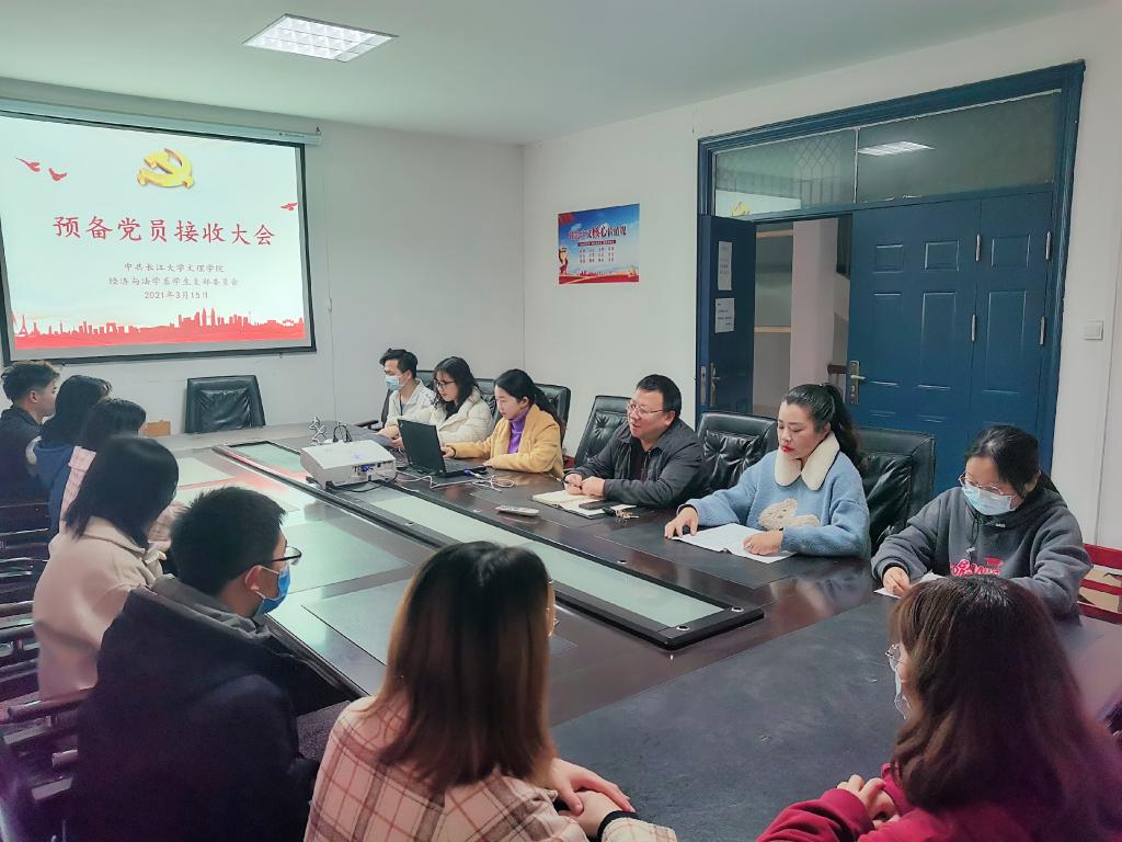 本网讯(通讯员 文国霞)3月15日晚,经法系员工党支部召开全体党员大会。讨论发展对象童彤同志能否入党的事宜。经法系党总支书记李成军、党总支副书记、员工党支部书记杨杉杉、辅导员卢佳智及全体党员参会。会议由经法系员工党支部组织委员文国霞主持。