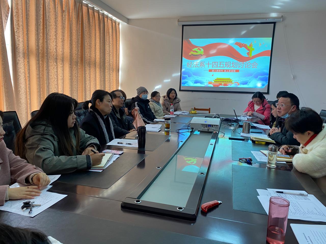 2021年1月12日上午,经法系全体教职工在会议室召开“十四五”事业发展规划讨论会议,会上,大家认真学习了《yl6809永利集团“十四五”事业发展规划编制工作方案》,然后围绕经法系“十四五”事业发展规划的编制展开讨论,大家发言积极、讨论热烈,为经法系在未来5年的专业建设、团队队伍建设、实验室建设、科研发展等方面建言献策。