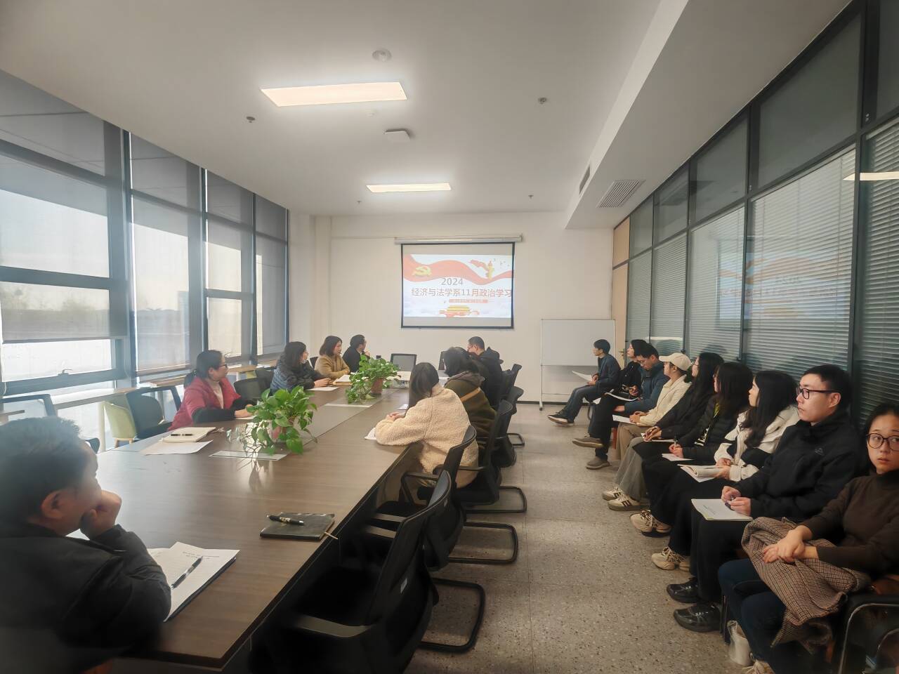 11月28日下午16:00,经法系教工支部在系会议室开展11月政治学习和支部主题党日活动。会议由教工党支部书记陈莉主持。