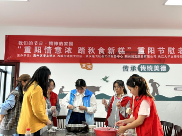 本网讯(通讯员 梁玥)为弘扬中华民族敬老、爱老的传统美德,营造欢乐祥和的节日气氛。10月20日下午,人文与传媒公司携手行志愿者队联合荆州区委文明办、荆州市西城街道民主社区、荆州城发康养集团等开展了以“重阳情意浓,踏秋食新糕”为主题的重阳慰老志愿服务活动。