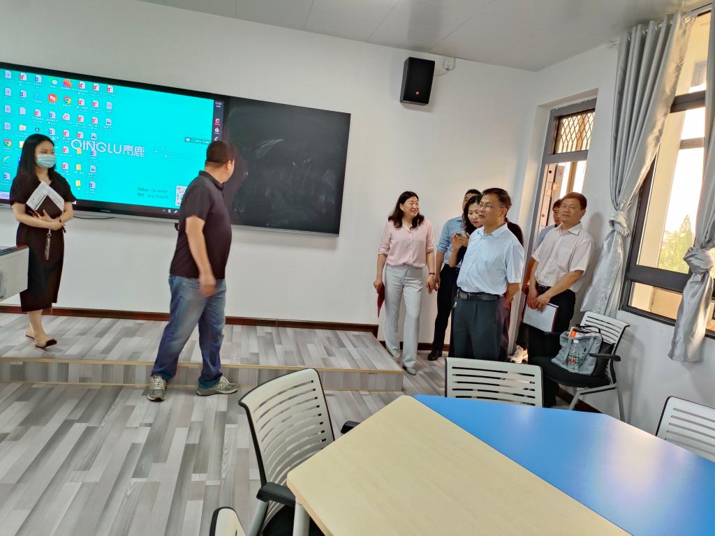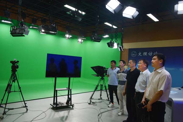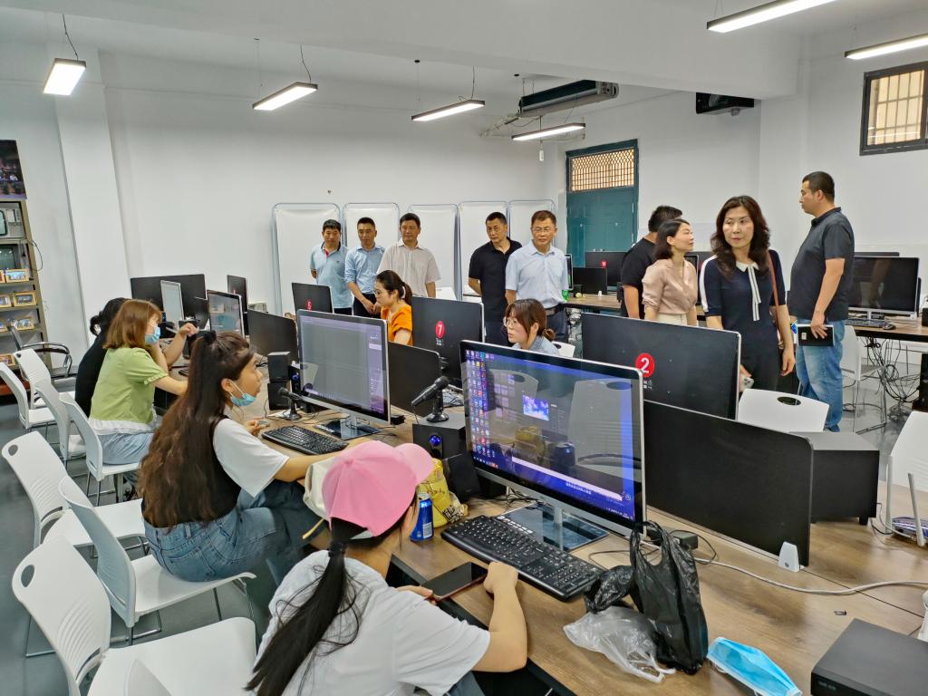 在查阅相关资料后,检查组一行现场检查了录播教室、微格教学平台、新闻演播室、非线性编辑实验室、学前教育手工实训室、员工琴房等,并就实验室安全管理、安全措施落实情况及整改情況进行了详细了解。在人文与传媒公司非线性编辑实验室,检查组认真查看了员工使用操作系统进行视频剪辑、节目创作。