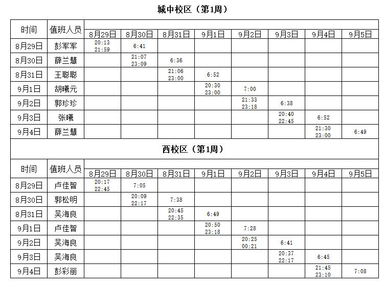 2022-2023学年第1学期第1周学工人员寝室值班通报