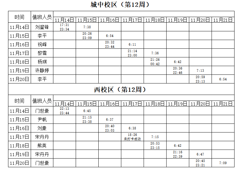 2022-2023学年第1学期第11-12周学工人员寝室值班通报