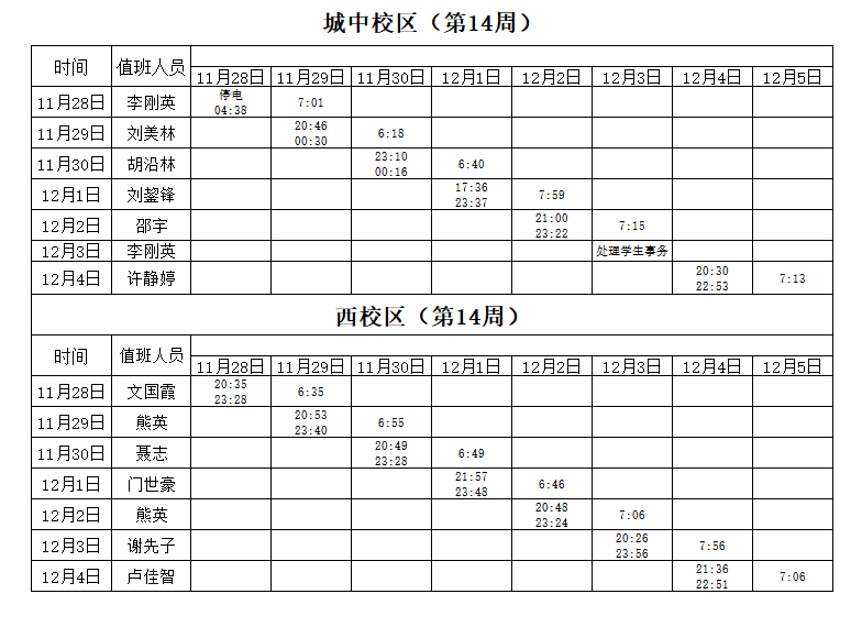 2022-2023学年第1学期第14周学工人员寝室值班通报