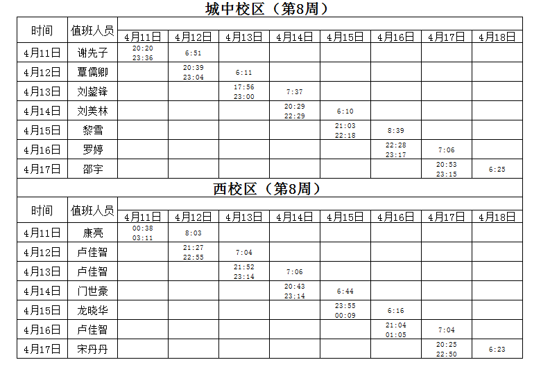 2021-2022学年第2学期第8周学工人员寝室值班通报