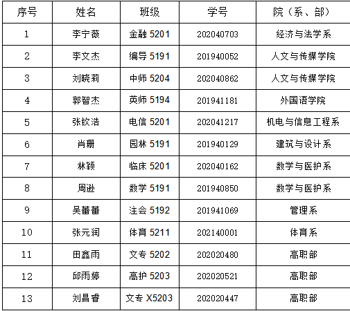 经个人申请、各院(系、部)推荐、员工工作部进行资格审查通过的13名候选人。具体名单如下: