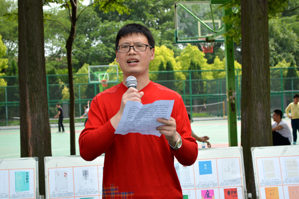 舒美华宣读倡议书,她倡导:我们应当在书籍的世界里,以书为友,以书会友,对话经典,神交古人,怡然自得,做一个精神上富足的人,人格上伟岸的人,道德上高尚的人。