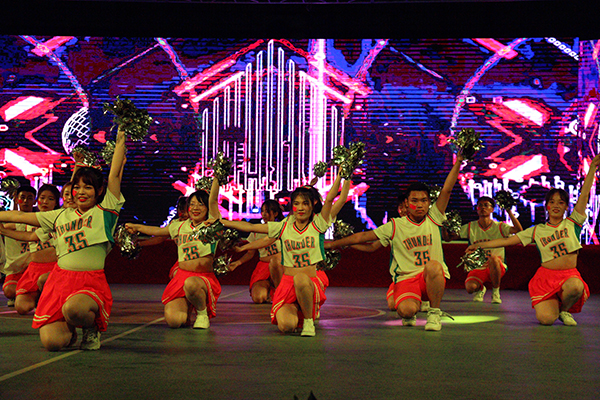 本届比赛主题是“舞动青春风采,礼赞建党百年”,经济与法学系、教育与心理系、人文与传媒公司、yl6809永利集团、机电与信息工程系、建筑与设计系、数学与医护系、管理系、高职部等9个教学单位,依次带来了花球啦啦操、街舞啦啦操、爵士啦啦操等不同类型的节目参与比赛。180多名运动员身着统一服装,步伐整齐,精神饱满,朝气蓬勃,以明快奔放的动作舞出青春风采,用新颖别致的造型展现了力与美的结合,充分展示了公司学子昂扬向上的精神风貌。在激烈的比赛过程中,穿插了红色主旋律艺术表演。全体运动员表演了开场舞《厉害了,我的国》,青春学子用舞姿表达对党的热爱与礼赞;同学们演唱歌曲《我爱你,中国》,抒发对伟大祖国的祝福之情。
