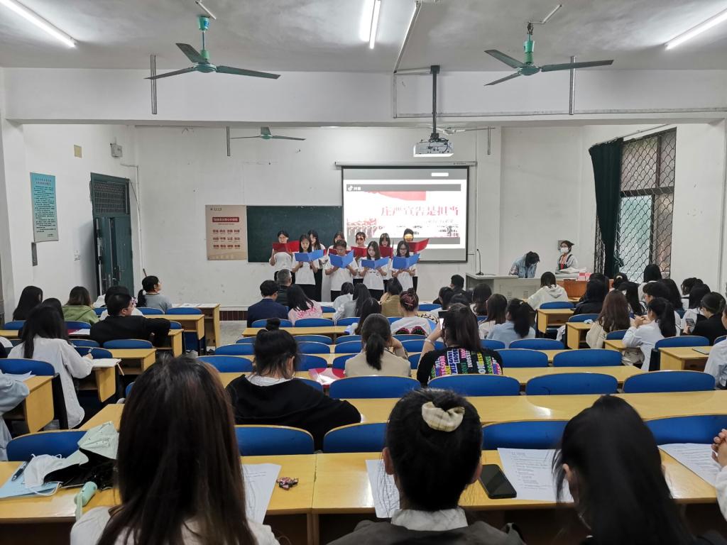 比赛流程分为支部学“习”成果介绍与支部风采展示两部分。活动现场,各班团支部围绕红色、青春主题,借用演讲朗诵、演唱舞蹈、情景剧等多种方式进行风采展示。