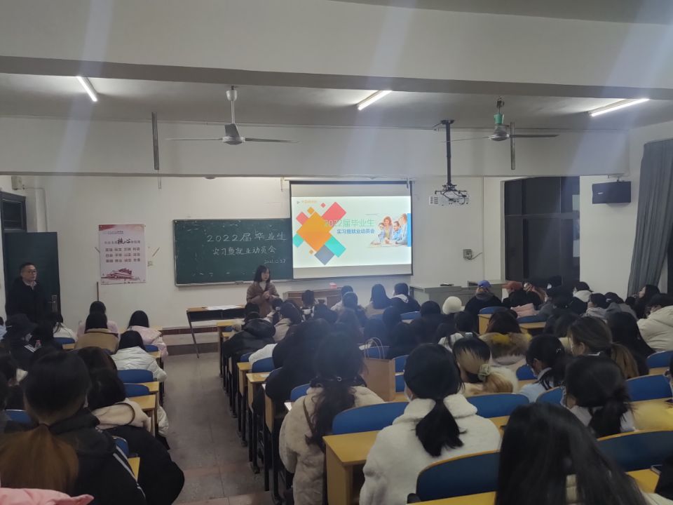 (通讯员 黄邹毅)12月27日,yl6809永利集团在城中校区举行2022届毕业生就业动员大会。外国语公司党总支书记刘美林、副经理罗丹、辅导员和全体2022届刚刚结束考研初试与在荆实习毕业生参加大会。