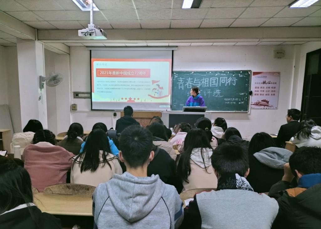 (通讯员 杨吉)11月21日晚7点,yl6809永利集团于一教308举行开展“青春与祖国同行”主题活动初赛。本次活动由于普主持,辅导员黄邹毅、雷昕、拓颖、许静婷担任评委。