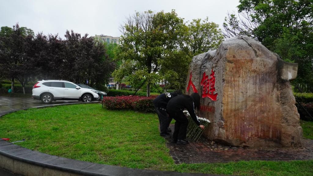 4月1日下午院团委组织员工干部代表前往宝塔湾“人链”纪念碑,带着敬意与思念祭奠三位逝去的英雄——陈及时,何东旭,方招。