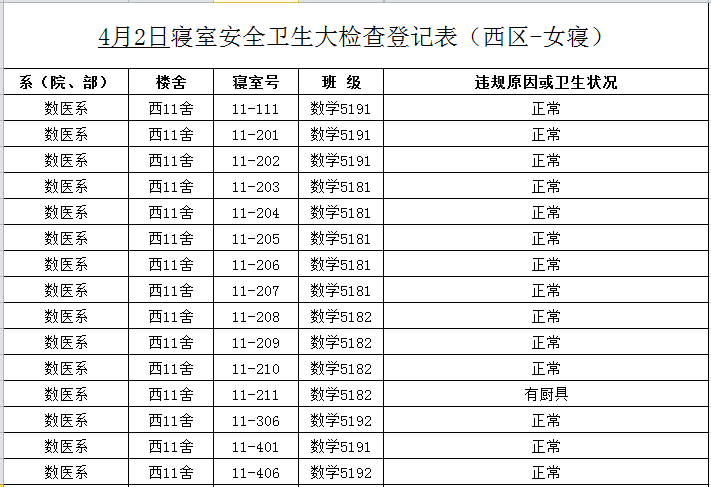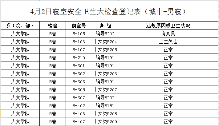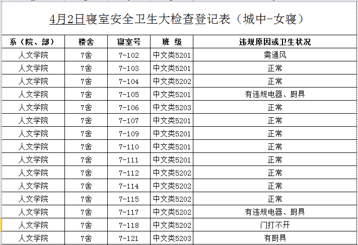 2020-2021学年第二学期第5周寝室检查结果通报