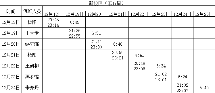 2023-2024学年第一学期第17周学工人员寝室值班通报
