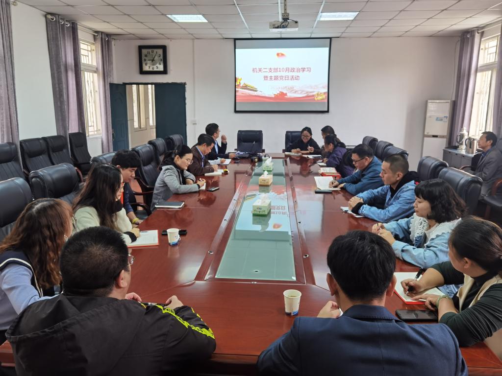 10月13日上午,机关二支部在行政楼会议室开展10月份政治学习和主题党日活动。支部书记石义主持活动,全体教职工参加。