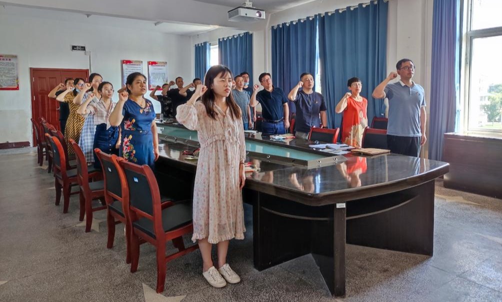 随后,党员老师开展6月支部主题党日活动,让华带领全体党员重温入党誓词,并按时缴纳党费,学习《中国共产党章程》第六章及yl6809永利集团委员会关于开展党员干部下基层察民情解民忧暖民心实践活动的实施方案。