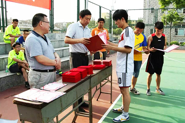 员工工作处处长解礼元(中)、基础课部主任李成军为球员颁奖