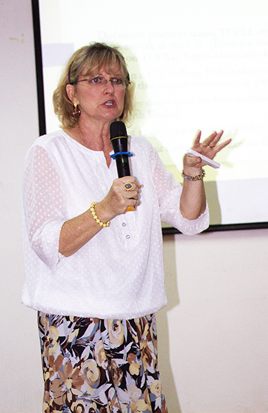 本网讯(通讯员 韩晗)6月11日下午,外语系系主任许晓艳在学术报告厅为2014级全体英语师范生作学业及职业指导。
