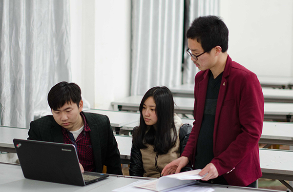 获奖学子在讨论专业学习方法
