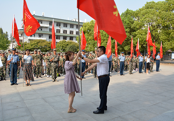本网讯(记者 刘磊)今天(9月7日)下午,公司党委书记朱继平在城中校区和西校区为军训方队授旗,宣布2019级新生军训正式开始。